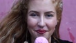 Retrato de uma jovem feliz comendo um sorvete - Vídeo de acervo HD