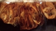 Frothy coffee drink poured into transparent glass. Layers mixing together. Abstract patterns