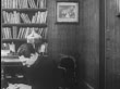 B/W 1912 priest (Lionel Barrymore) enters room + sits while reading letter - Vídeo de acervo