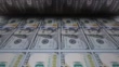 USA dollars banknotes printing press machine prints 100 USD banknotes. Animation showing how american money are being made.