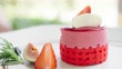 Nice decorated dish of Red velvet cake cutting with fork close up slow motion