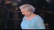 Royal variety show; ENGLAND: London: EXT AT NIGHTTMS Queen Elizabeth II (wearing blue dress) arriving at Royal Variety Performance PULL OUT as along red carpet (13 secs)MS Jennifer Lopez (singer/actress) signing autographs backstage then into car (14 secs)LA GV Vinnie Jones (former footballer & actor) looking out of window in theatreRonnie Wood and wifeGV 'The Dominion Theatre' lit up at night