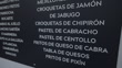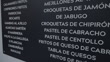 Close-up of black restaurant menu boards in Spain featuring a list of seafood dishes in white block lettering, including calamares, pulpo, gambas, and croquetas.
