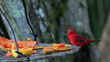 Summer Tanager on a bird feeder, PanamaPanama culture, nature and travel concepts