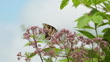 Swallowtail Butterfly Feeding on Pink Flowers Against Blue Sky - Vídeo de acervo 4K