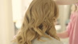 The hairdresser fixes the model's hair. - Vídeo de acervo 4K