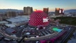 The Sphere in Las Vegas during the Formula 1 Race. Aerial view, dusk. - Vídeo de acervo 4K