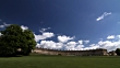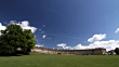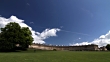 Time Lapse clouds in a blue sky over the Royal Crescent and Victoria Park in the Georgian City of Bath, United Kingdom.