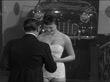 Winner of 'Miss World 1956' receives prize; ENGLAND: London:INTMiss World contestants lined up, including the winner, Miss Germany (Petra Schurmann) and other finalists Miss U.S.A., Miss Israel, Miss Japan, Miss Sweden & Miss Denmark /Judge Anita Ekberg / Miss Japan receiving prize / Miss Germany up steps to throne / Audience applaud / Shots of Miss Germany / Photographers and winner / Pan up winner's legs to face /TX 16.1.56 / 7pm