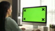 Zumbido na mulher asiática que usa o computador com tela verde em casa - Vídeo de acervo 4K